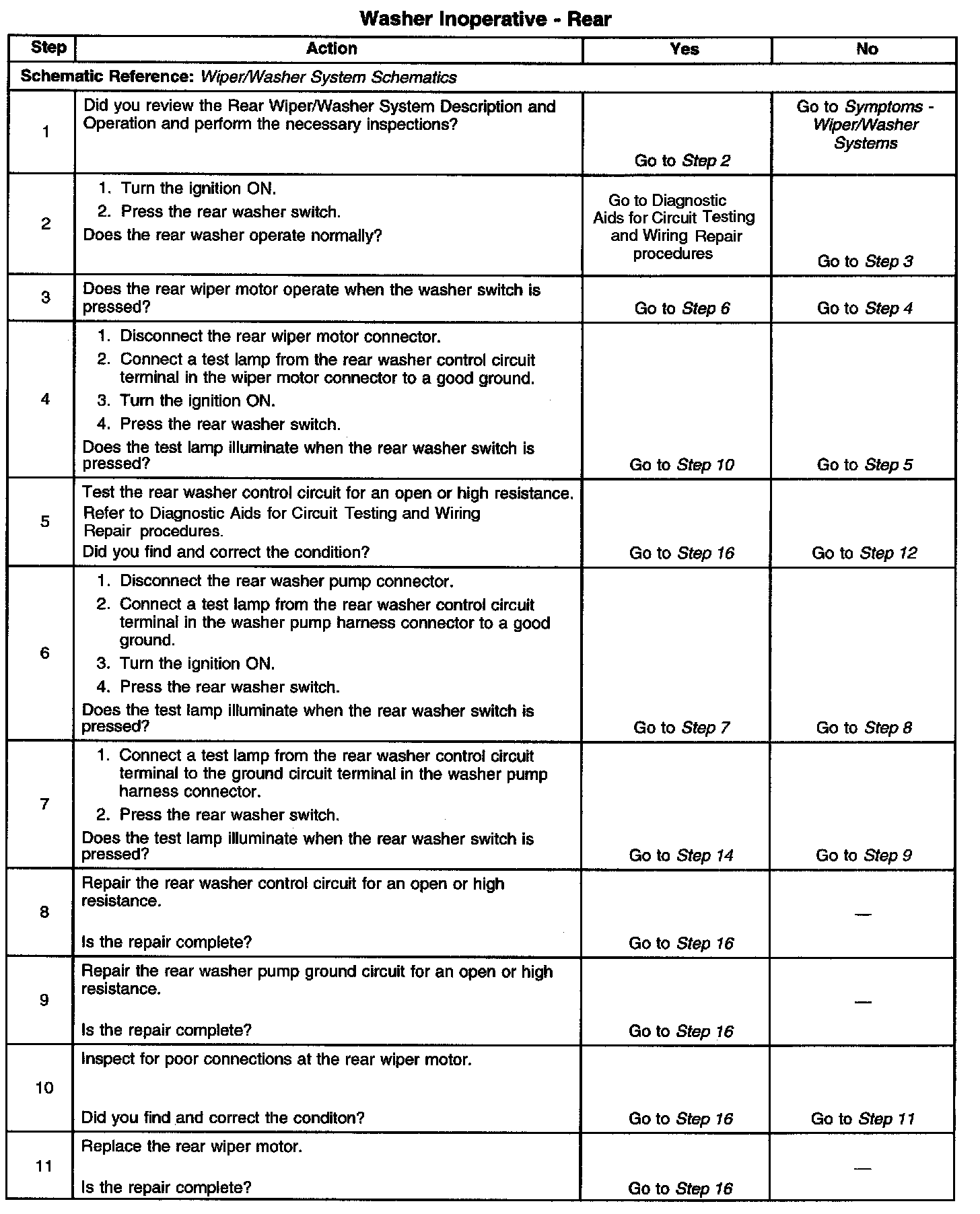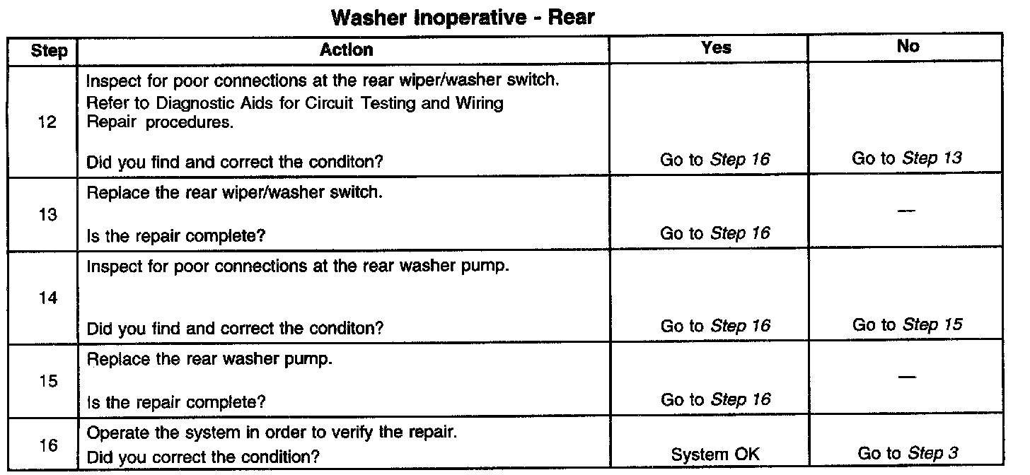 Washer Inoperative - Rear