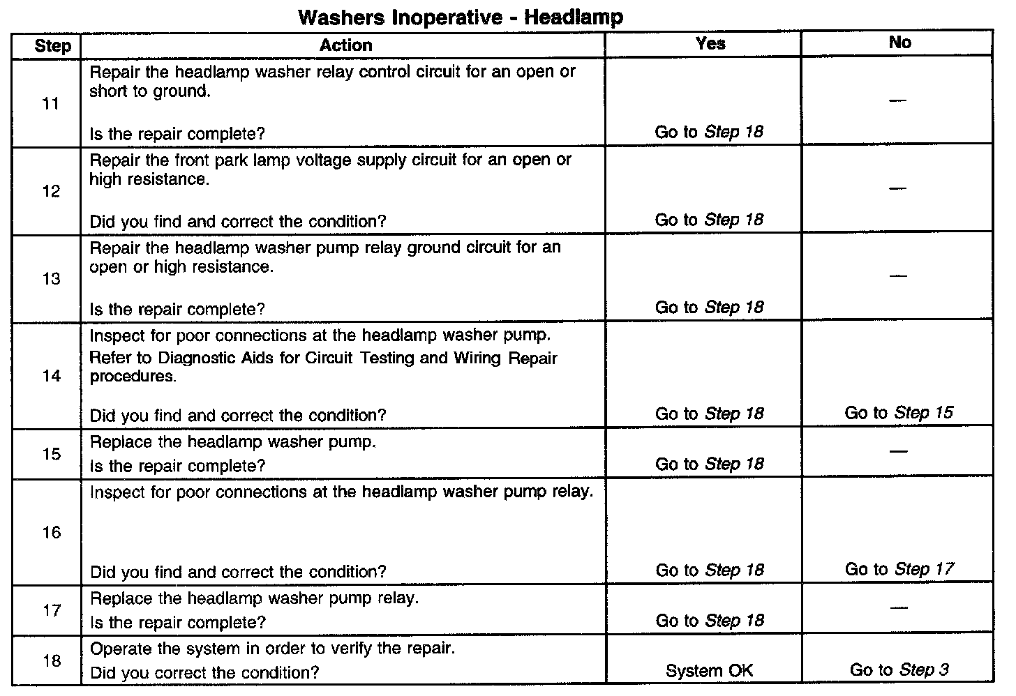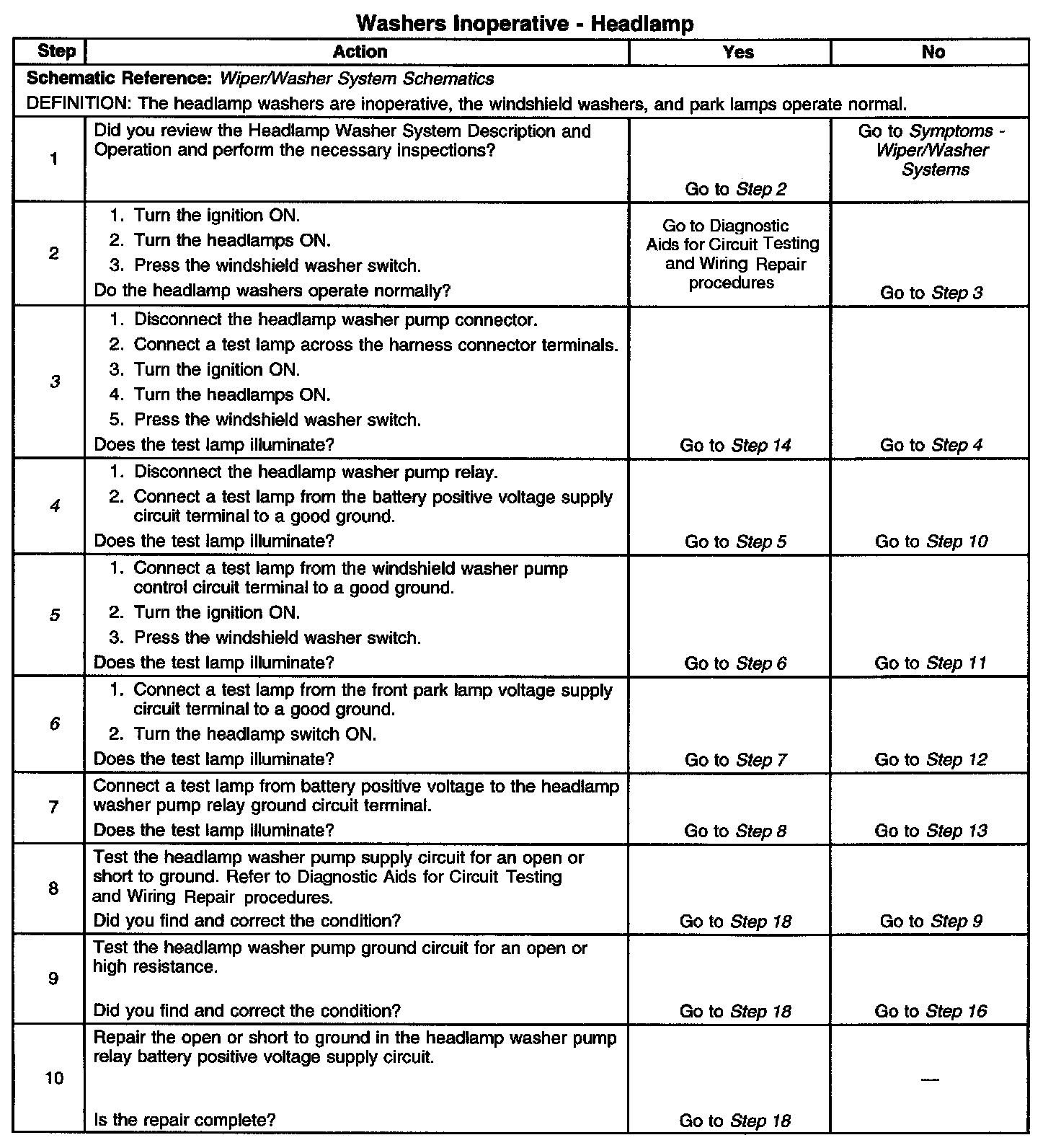 5. Tests the washer pump control circuit to the headlamp washer pump relay.