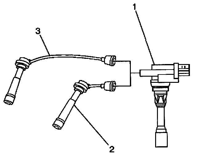 1. Connect the number three plug wire (2) to the number 2-3 ignition coil (1).