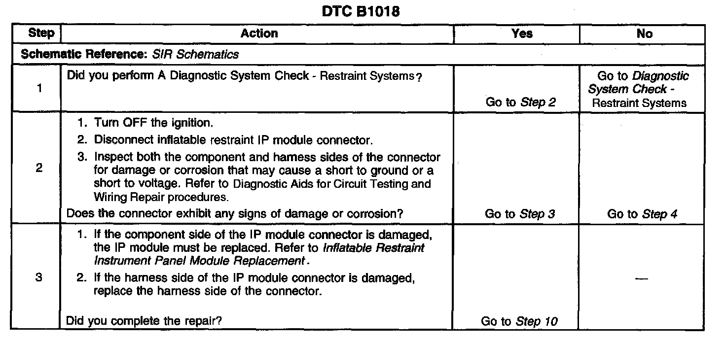 5. Tests to see if the malfunction is caused by the inflatable restraint IP module.