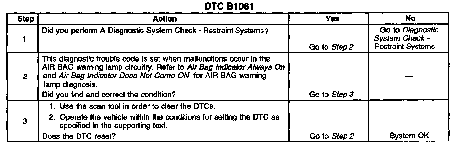 CIRCUIT DESCRIPTIONWhen the ignition switch is turned to the ON position battery voltage is applied to the AIR BAG indicator and to the ignition 1 voltage input at the inflatable restraint Sensing and Diagnostic Module (SDM). The SDM responds by flashing the AIR BAG indicator seven times.