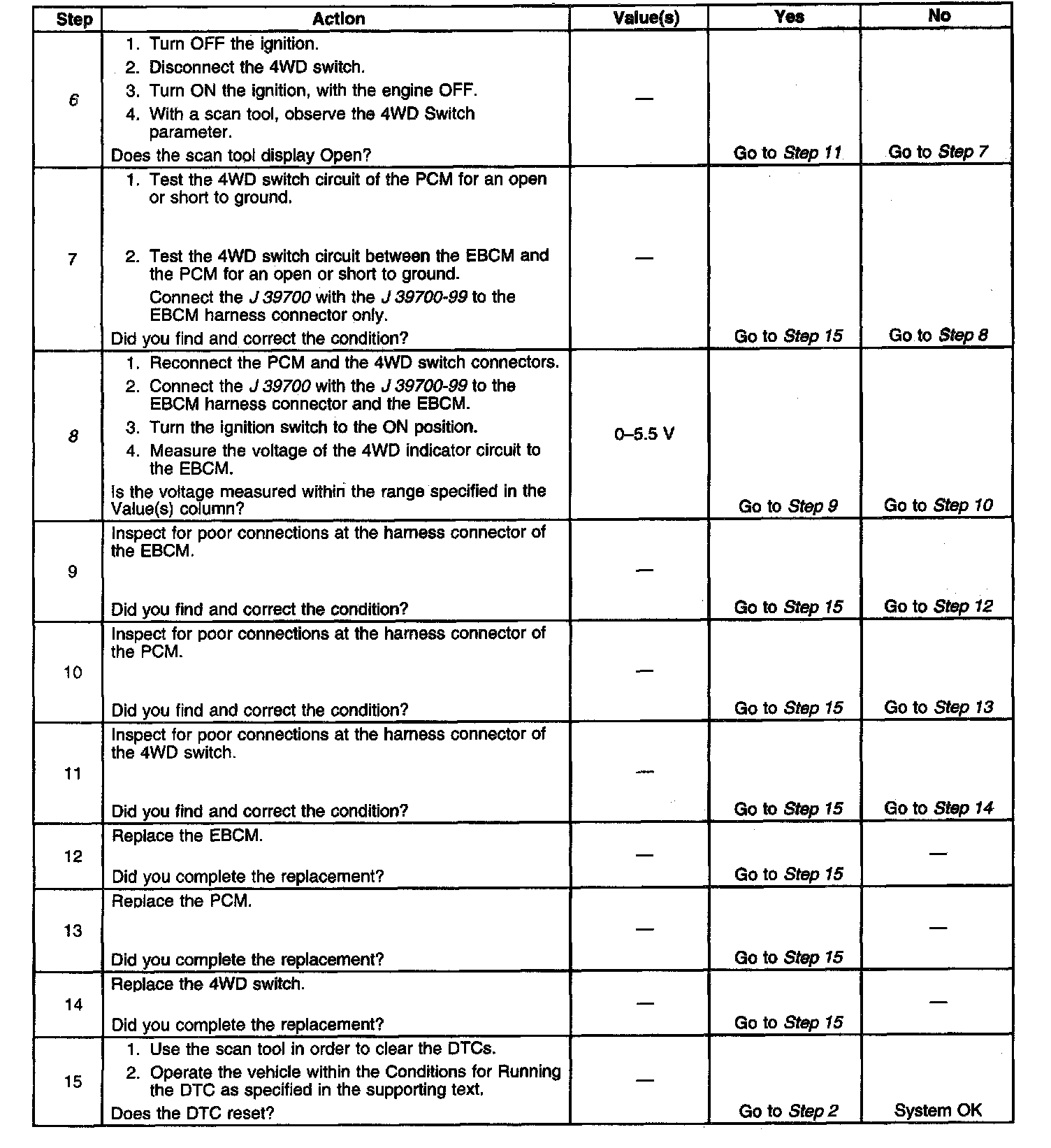 ^ A malfunction exists if the EBCM detects an open in the 4WD Signal circuit.