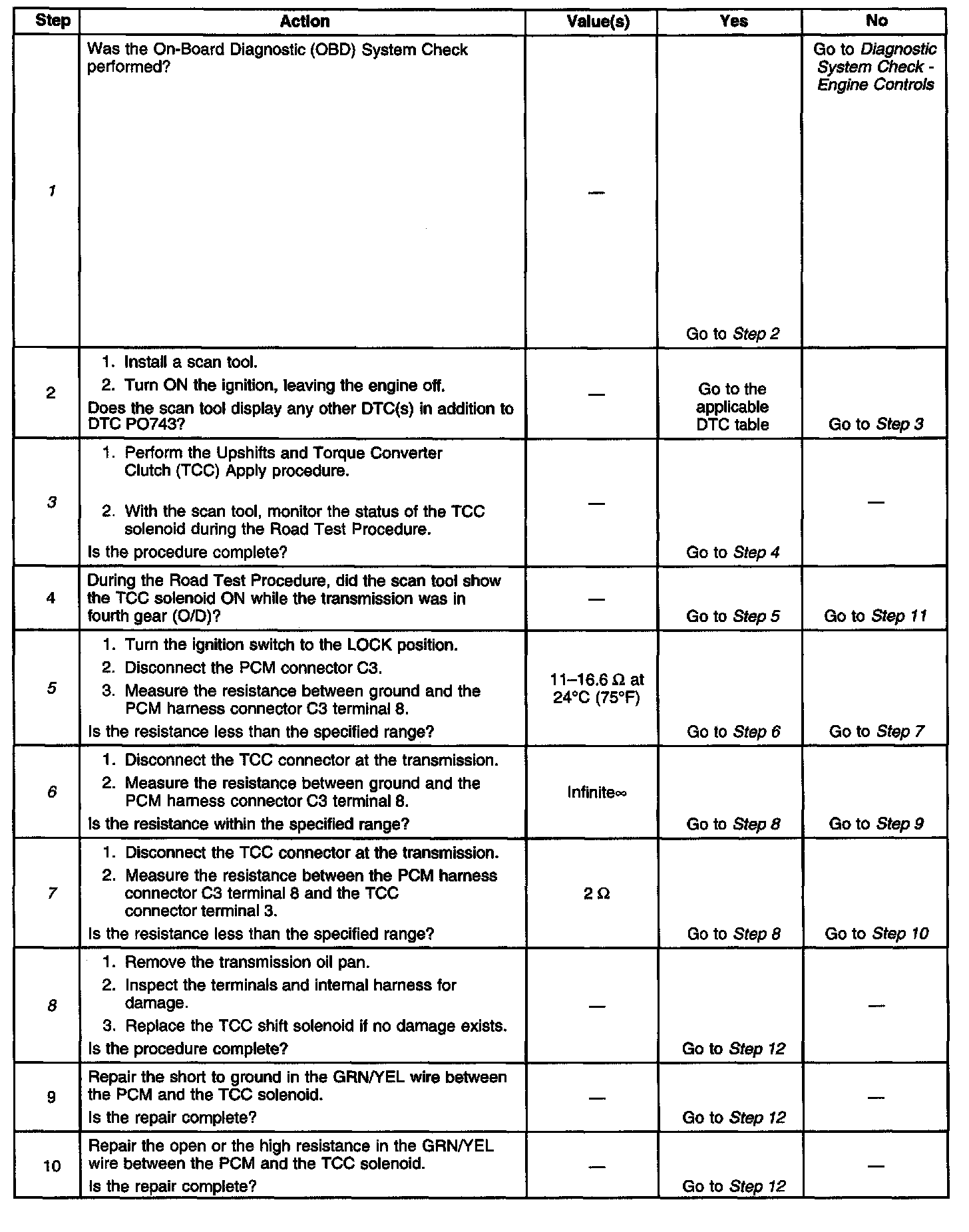5. This step tests the total resistance of the TCC solenoid circuit.