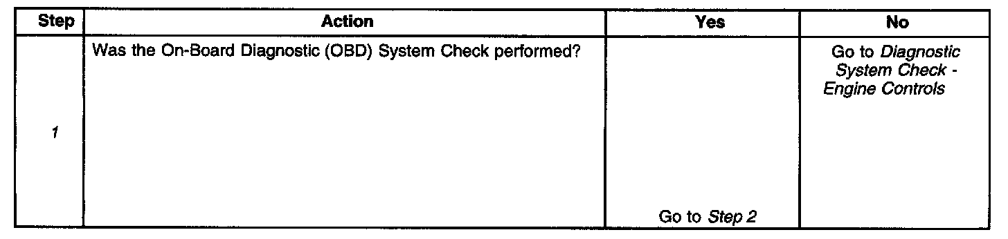 1. The Powertrain OBD System Check prompts the technician to complete some basic checks and store the freeze frame data on the scan tool if applicable. The scan tool creates an electronic copy of the data taken when the fault occurred. The information then stores in the scan tool for later reference.