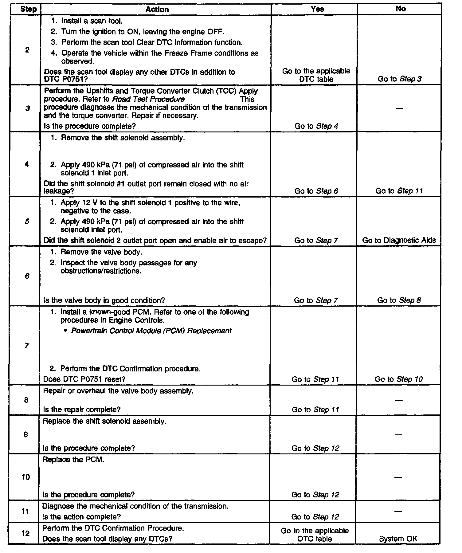 6. This step inspects for a stuck closed TCC solenoid 1.
