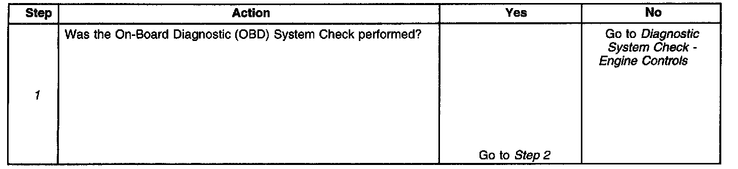 1. The Powertrain OBD System Check prompts the technician to complete some basic checks and store the freeze frame data on the scan tool if applicable. The scan tool creates an electronic copy of the data taken when the fault occurred. The information then stores in the scan tool for later reference.