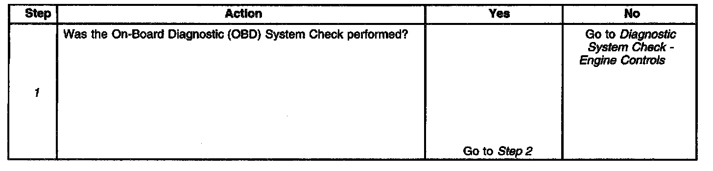 1. The Powertrain OBD System Check prompts the technician to complete some basic checks and store the freeze frame data on the scan tool if applicable. The scan tool creates an electronic copy of the data taken when the fault occurred. The information then stores in the scan tool for later reference.