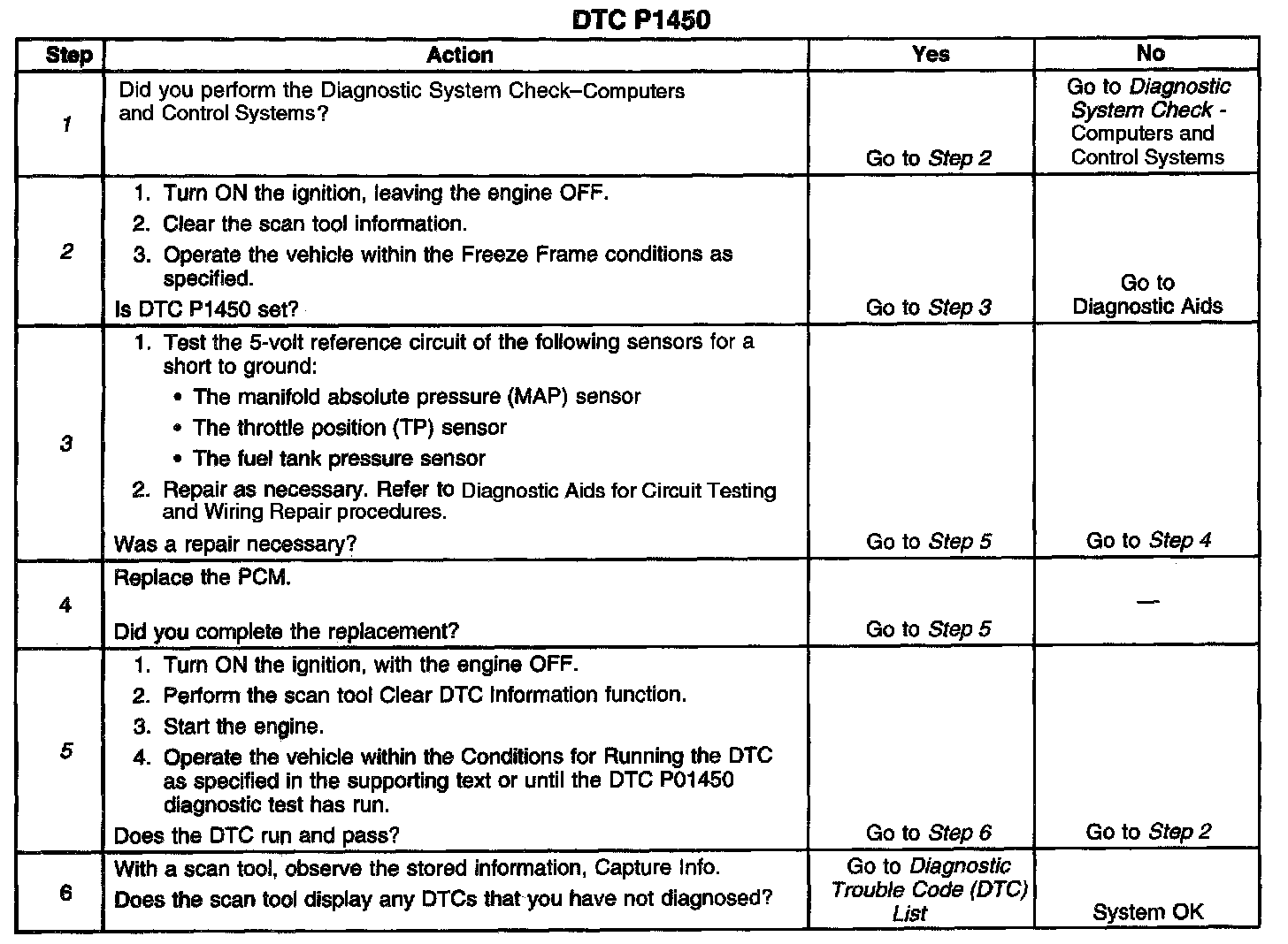If DTC P1450 cannot be duplicated, the information included in the Freeze Frame data can be useful in determining the vehicle operating conditions when the DTC was first set.