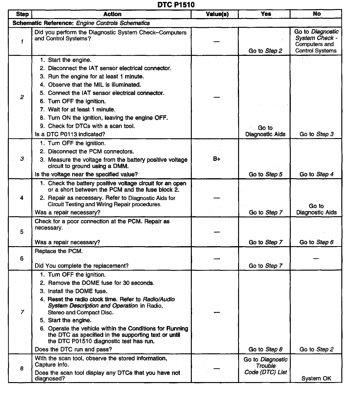 ^ The PCM stores DTC P1510 as long as the ignition is not turned OFF.
