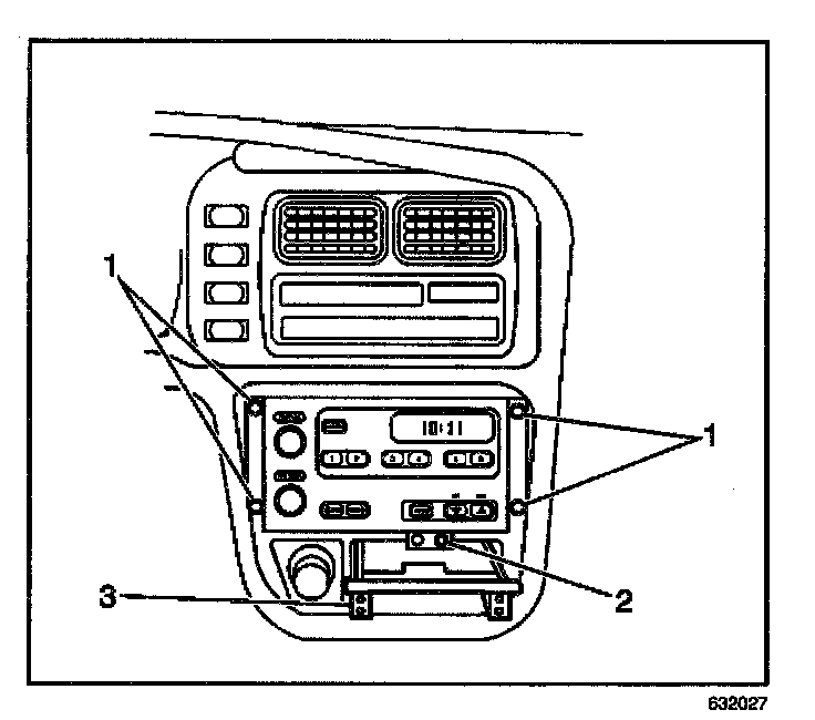 5. Remove the radio (3) from the vehicle.