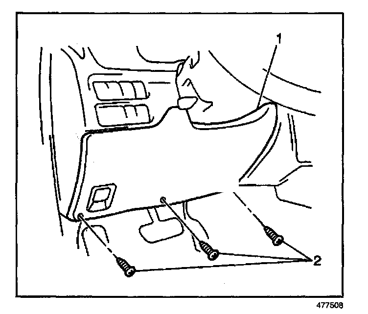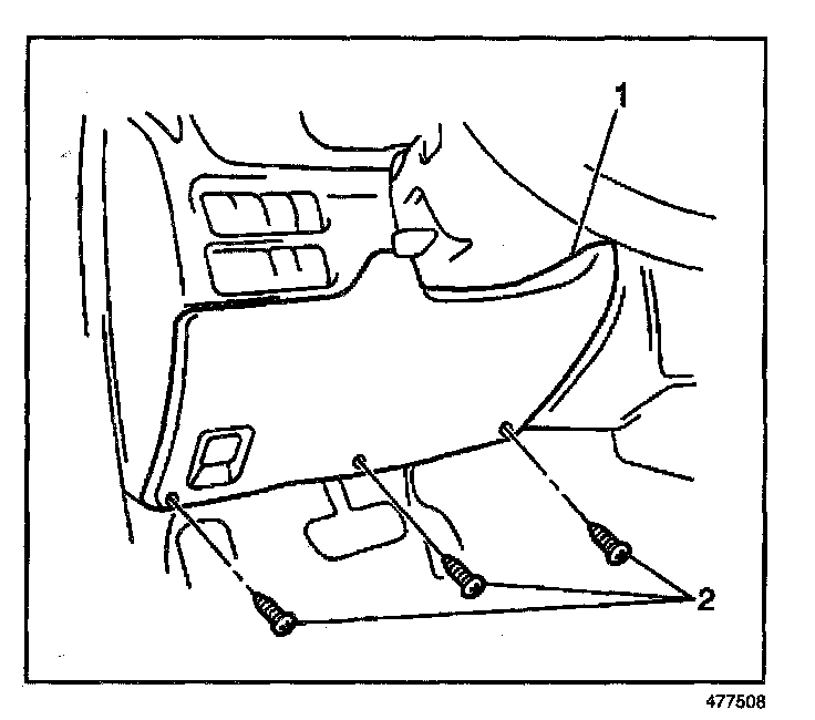3. Install the IP steering column opening trim plate (1) to the instrument panel. Secure the trim plate with the 3 screws (2).