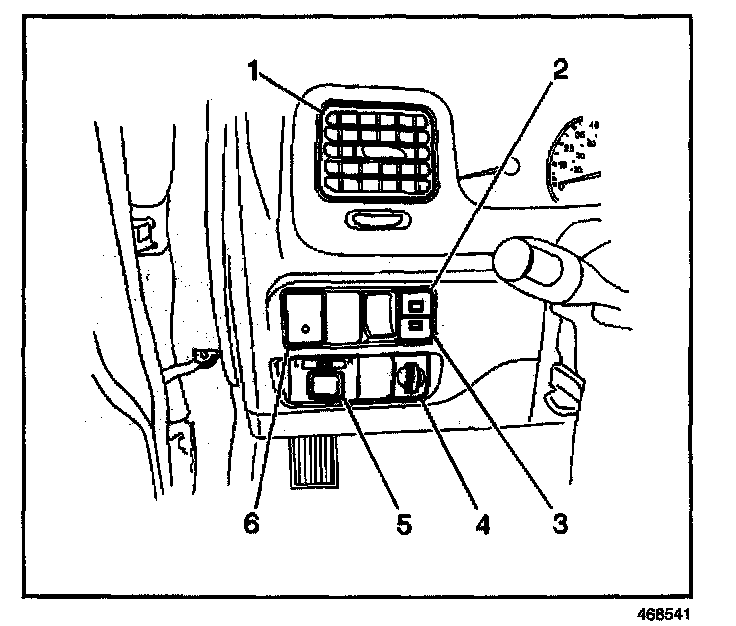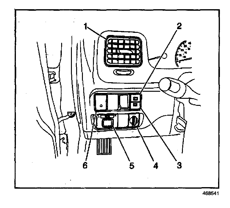 2. Release the upper and lower retaining tabs behind the instrument panel which secure the IP lamp dimmer control (4).
