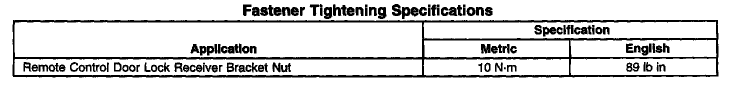 Fastener Tightening Specifications: