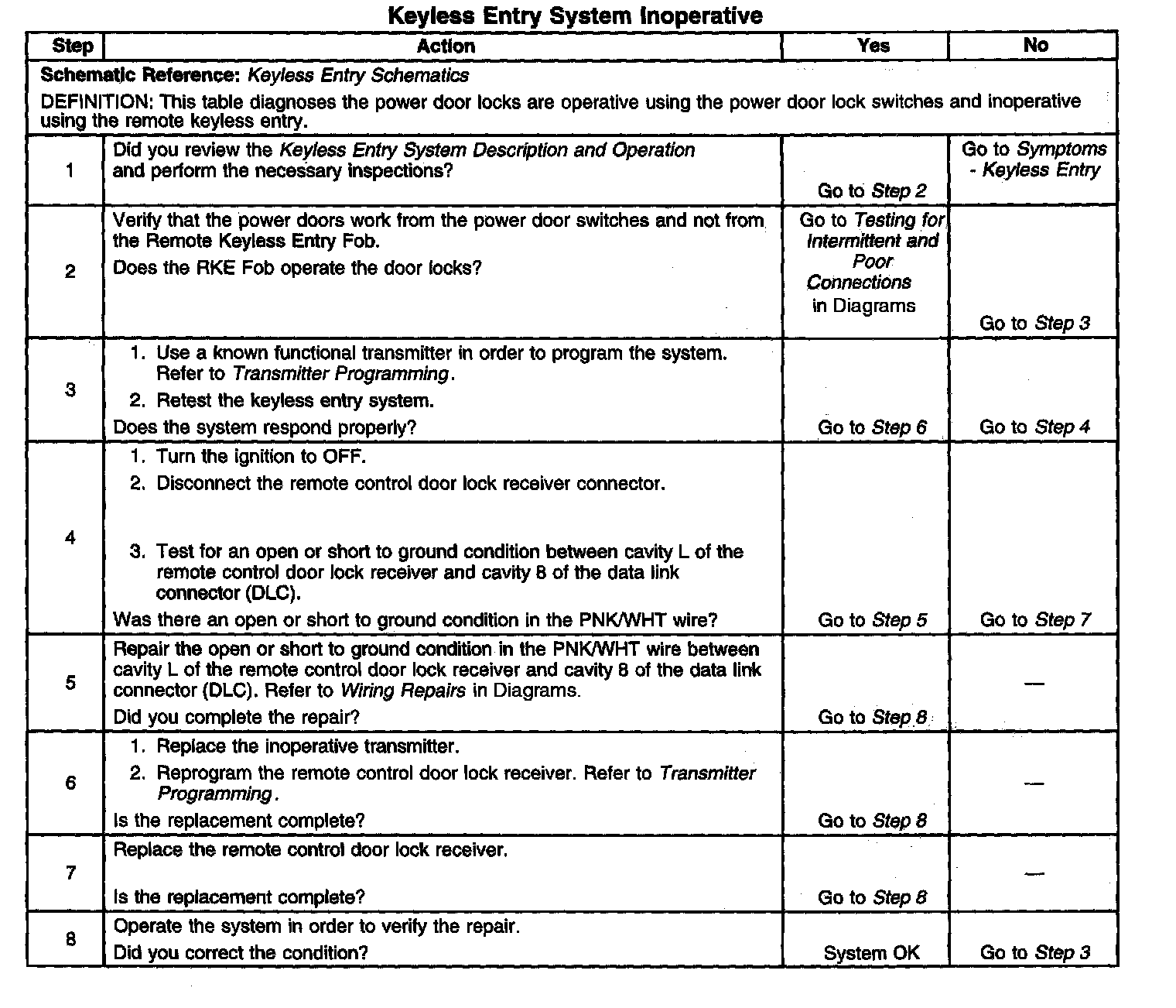 Keyless Entry System Inoperative