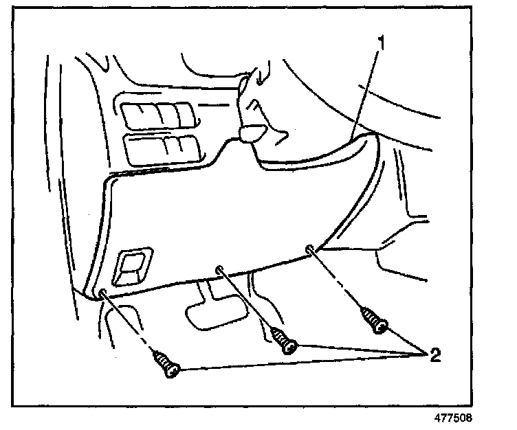 3. Install the IP steering column opening trim plate (1) to the instrument panel. Secure the trim plate with the 3 screws (2).