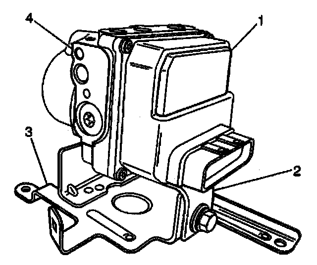 2. Remove the Brake Pressure Modulator Valve (BPMV) (4) and the Electronic Brake Control Module (EBCM) (1) as an assembly from the lower BPMV bracket (3).