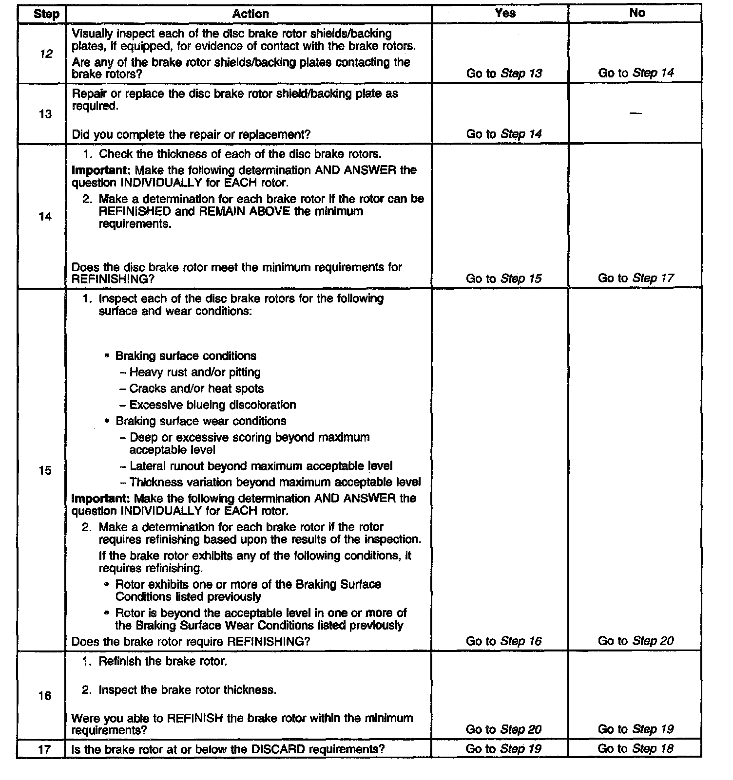 12. Disc brake shields that come in contact with disc brake rotors may cause brake system noise.