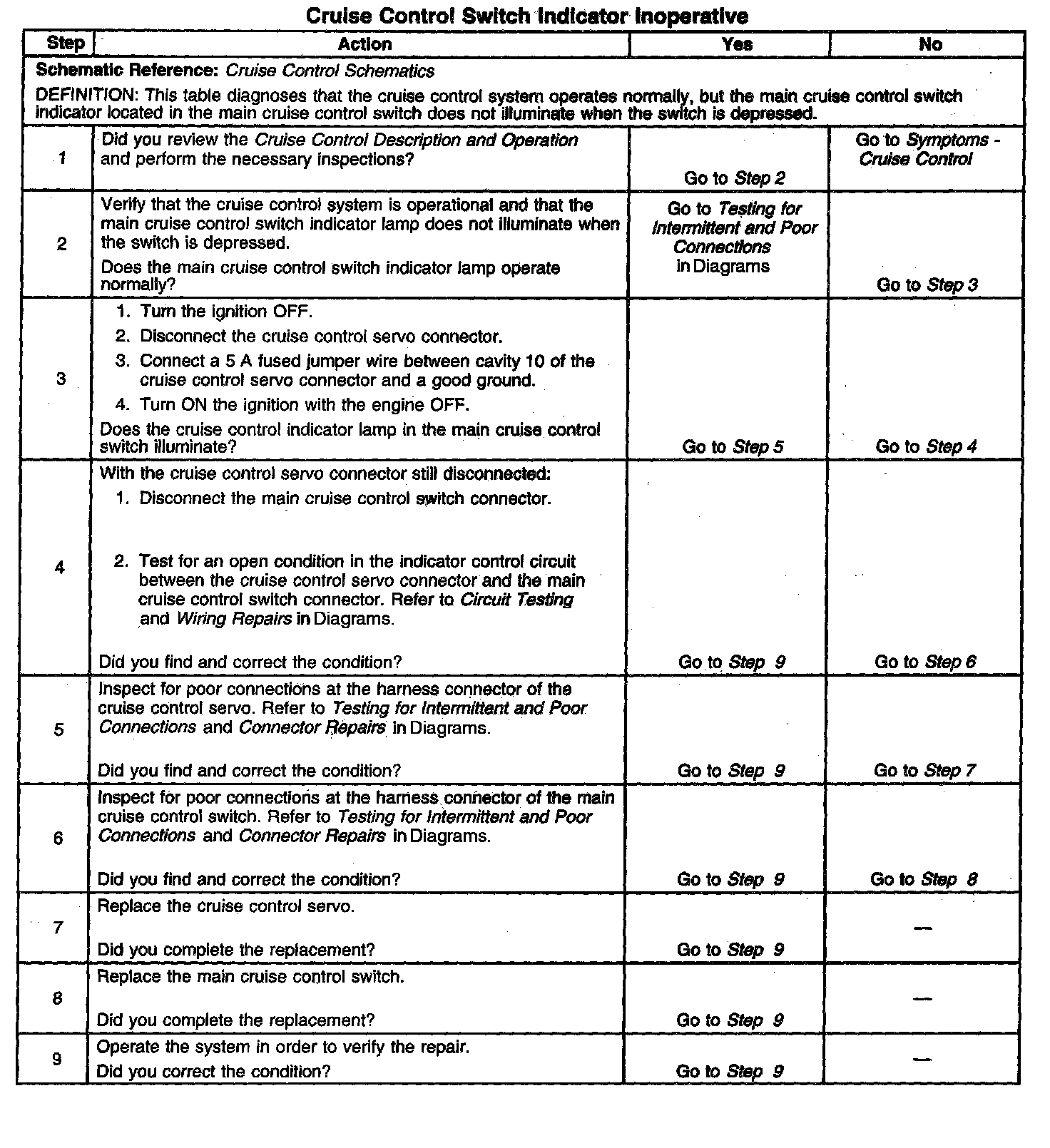 Cruise Control - Switch Indicator Inoperative