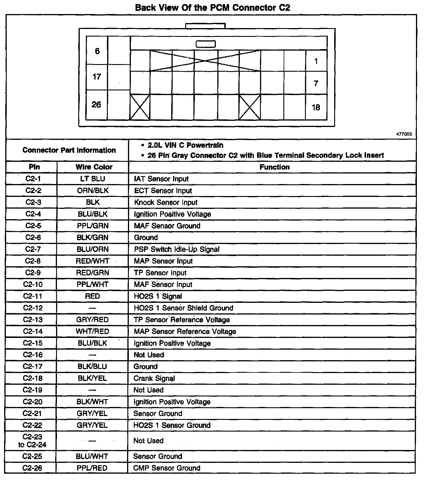 Back View Of The PCM Connector C2: