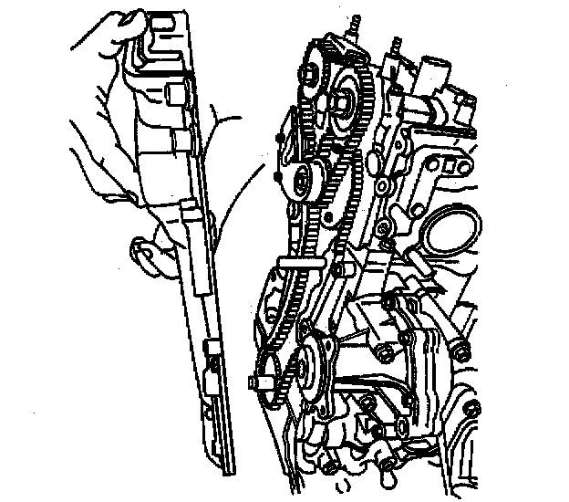 7. Install the timing chain housing. Secure with the nut and 15 bolts.
