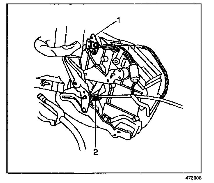REMOVAL PROCEDURE1. Remove the mode control cable from the clip (2) at the heater case. Unhook the cable from the mode door pin.