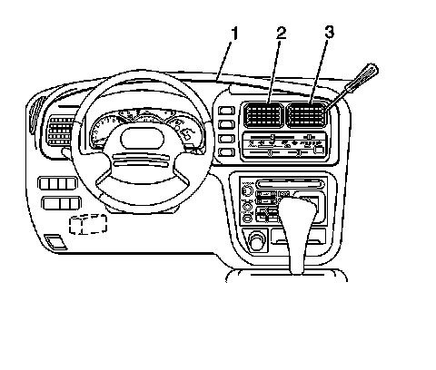 Install the center vent louver (2 or 3) to the instrument cluster trim plate (1) by inserting straight in, until the tabs engage.