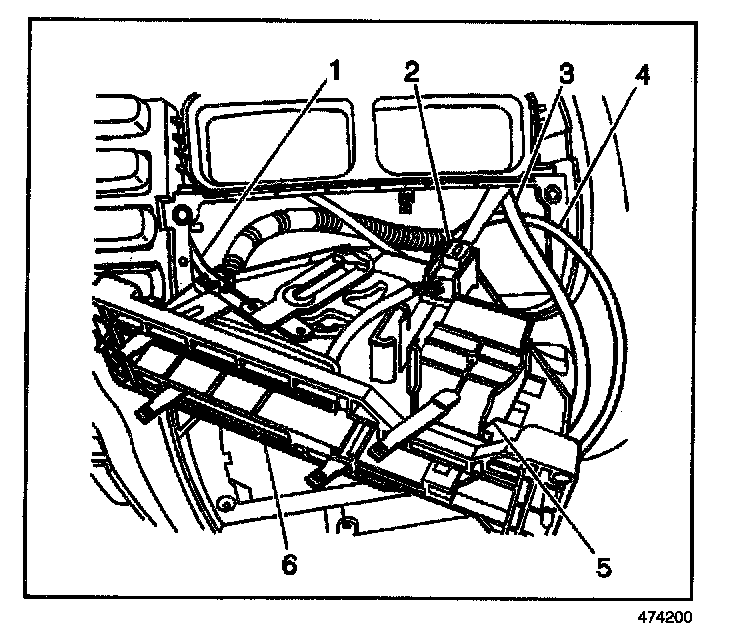 19.1. Gently pry the temperature control cable (4) sheath from the heater control unit. Unhook the cable from the lever arm.