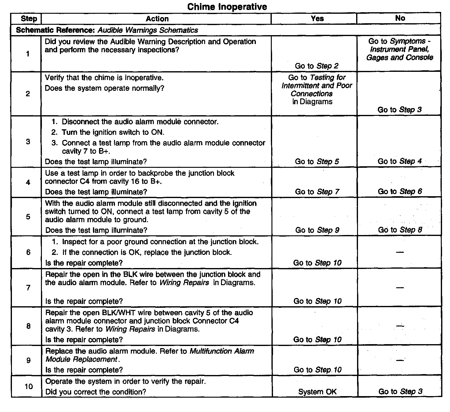 Chime Inoperative