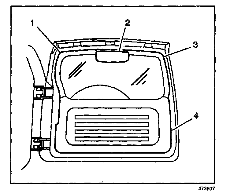 3. Install the high mounted stop lamp (3) to the rear door. Secure the stop lamp with the 2 screws (1).