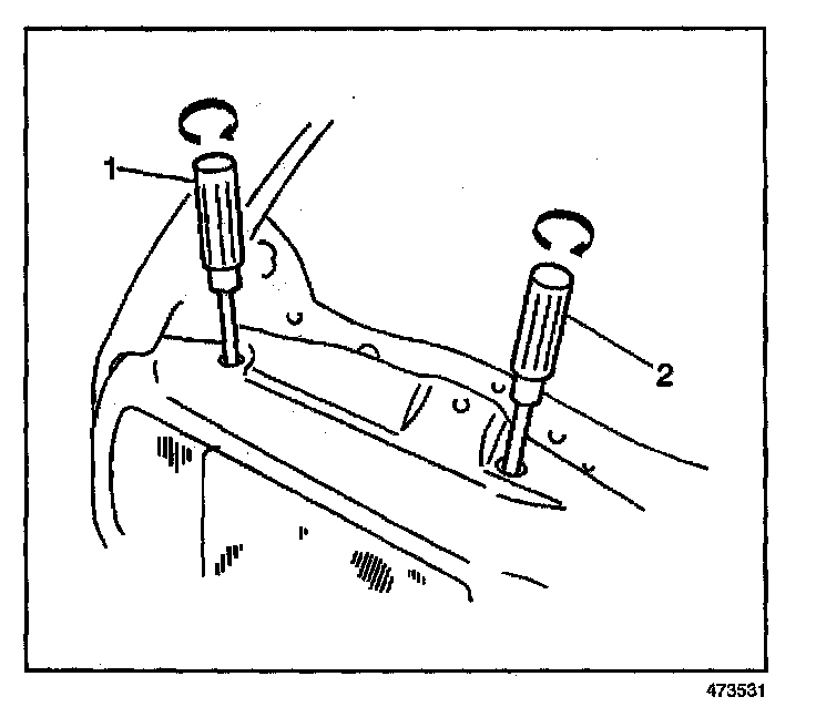 10. In order to adjust the horizontal aim, insert the screwdriver (2) and turn the horizontal headlamp adjusting screw