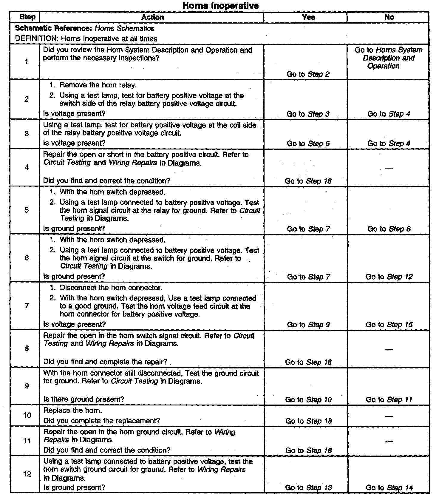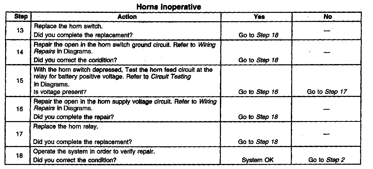 Horns Inoperative