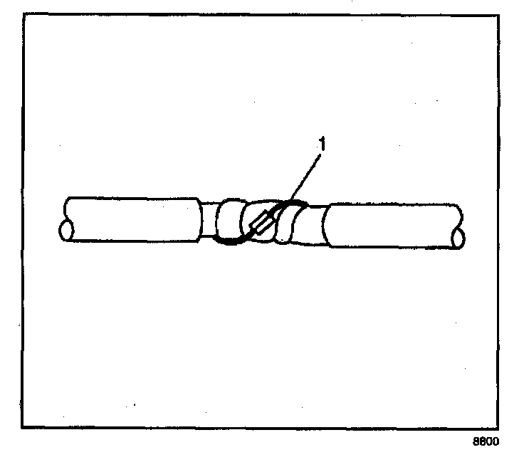 1. Remove the outer jacket (1). Use care not to cut into the drain wire of the mylar tape.