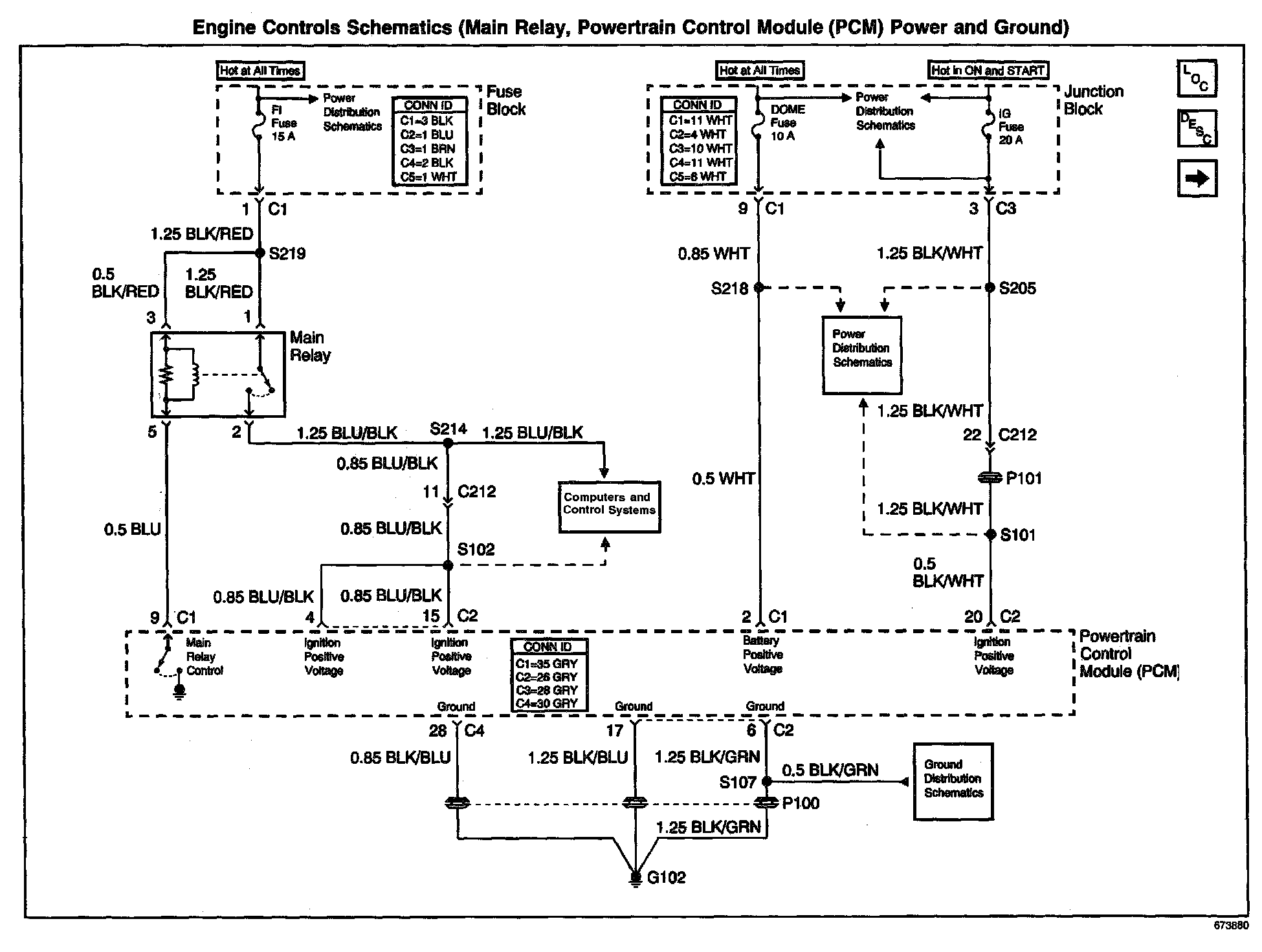 Engine Controls Schematics: Main Relay, Powertrain Control Module (PCM) Power And Ground: