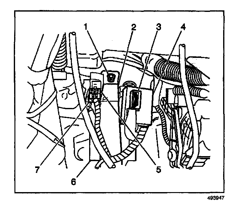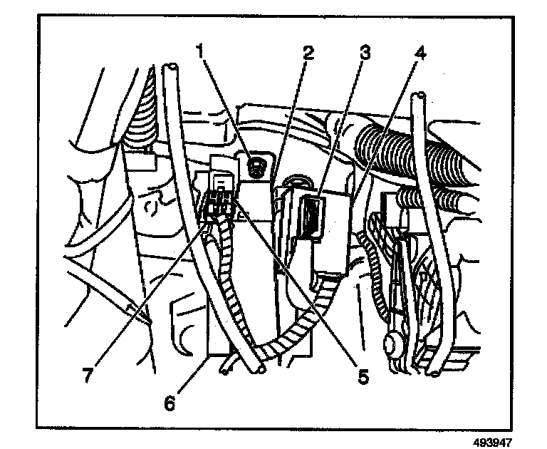 1. Install the DRL control module (4) to the vehicle. Secure the module with the mounting bolt.