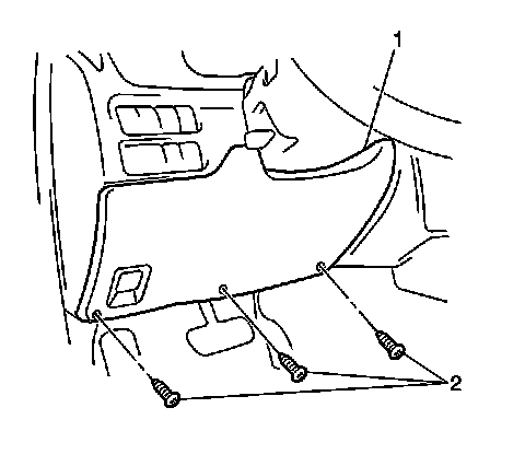 2. Install the IP steering column opening trim plate (1) to the instrument panel. Secure the trim plate with the 3 screws (2).