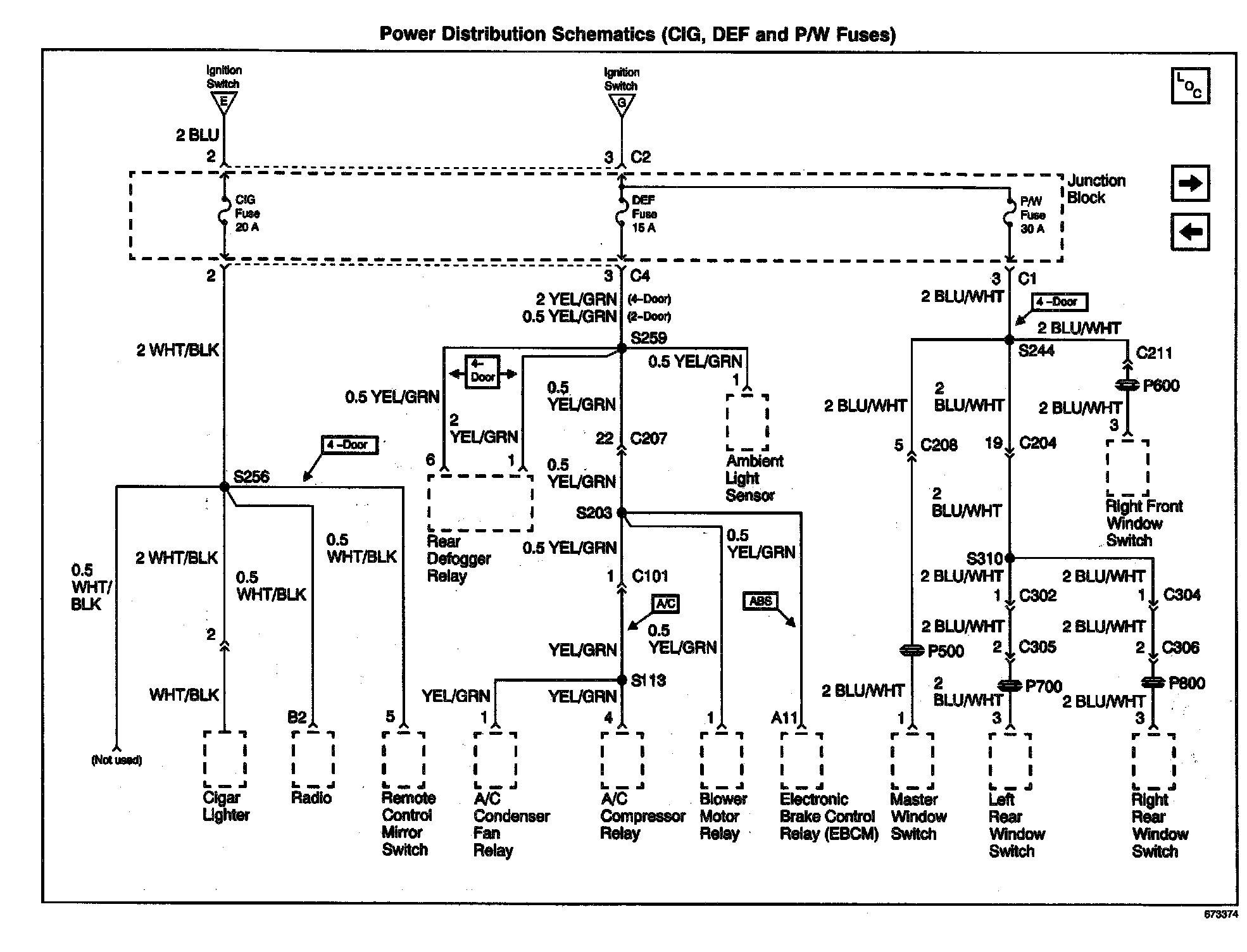 Power Distribution Schematics: CIG, DEF And P/W Fuses: