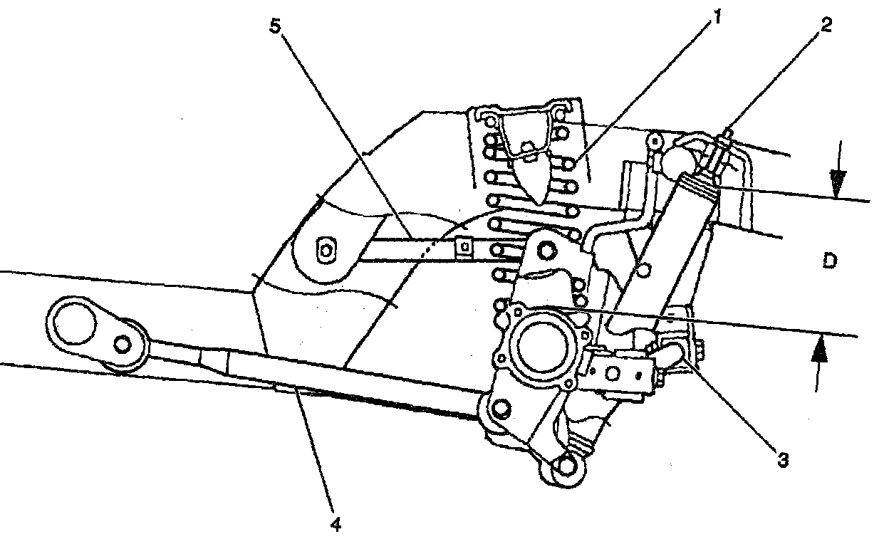 4. Compare the measurement to the specification. If the D dimension is not within 10 mm (0.4 inch) of the specification, replace the rear springs.