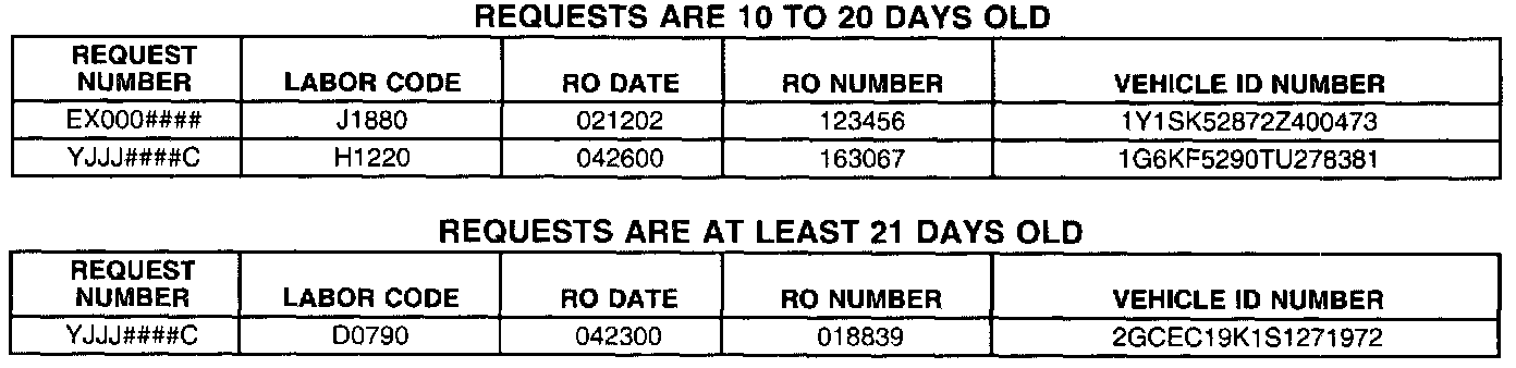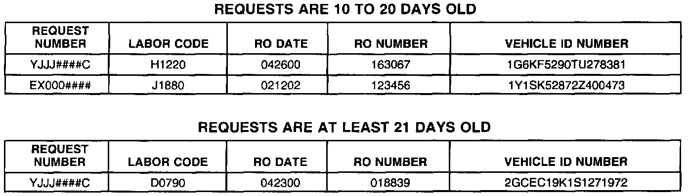 Shown are R.O. Only requests which should be returned to the requestor via the post office using the mailing label provided. No R.O. Only requests should be returned to the Warranty Parts Center.