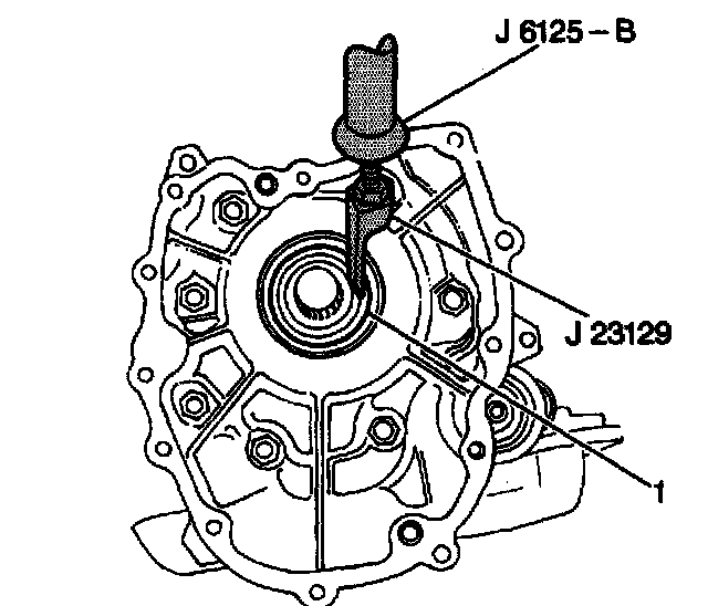 4. Remove the transfer adapter case seal (1) from the transfer adapter case using the J 23129 and the J 6125-B.