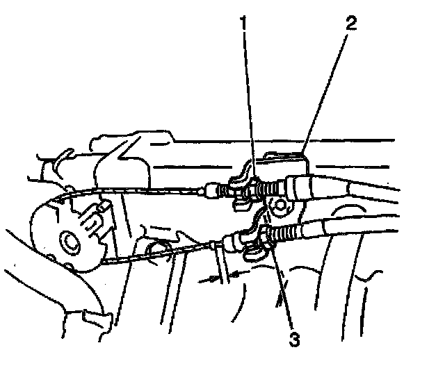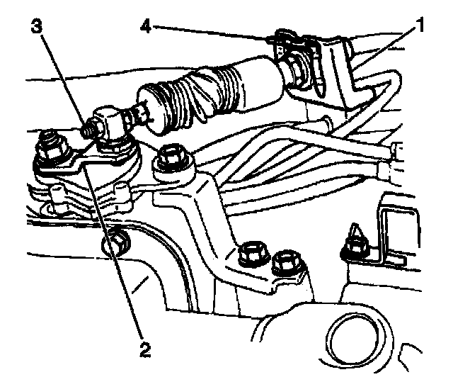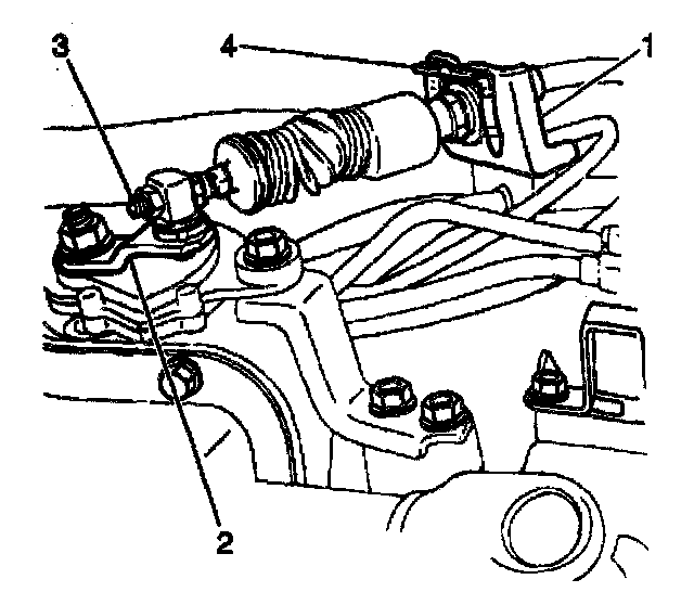20. Install the shift cable and retainer (4) to the cable (3) bracket (1).