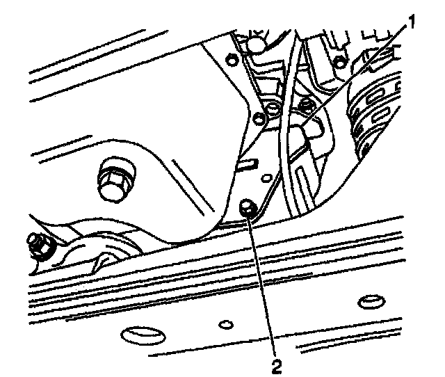 12. Install the flywheel inspection cover plate (1) and the bolts (2).