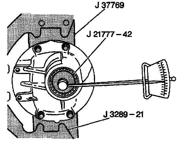 5. Rotate the J 21777-102 25 revolutions with the differential dummy attachment to ensure the pinion bearings are fully seated.