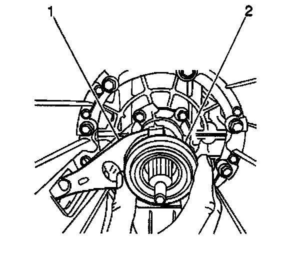 14. Connect the clutch release bearing (2) and the clutch fork boot (1) to the input shaft.