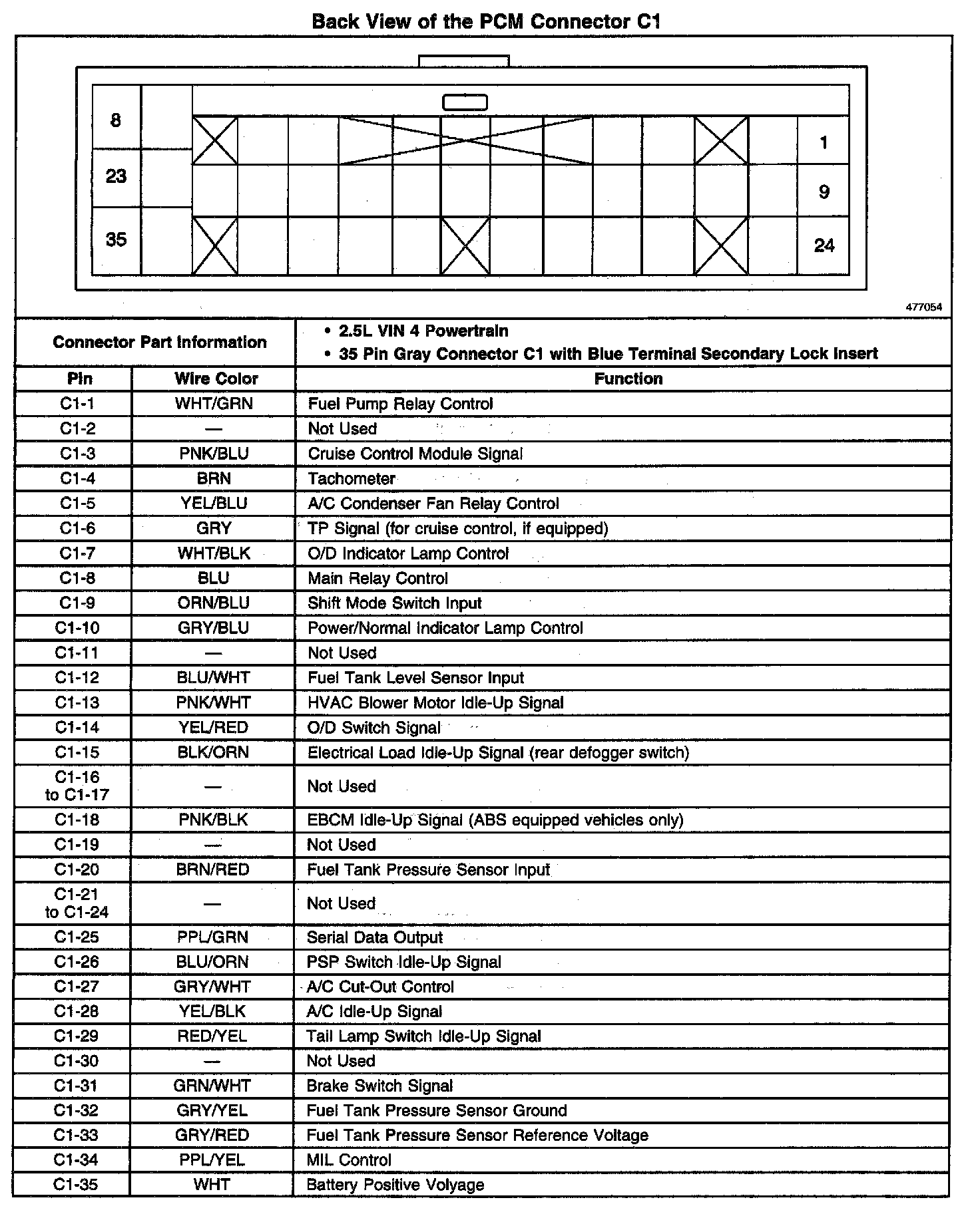 Back View Of The PCM Connector C1: