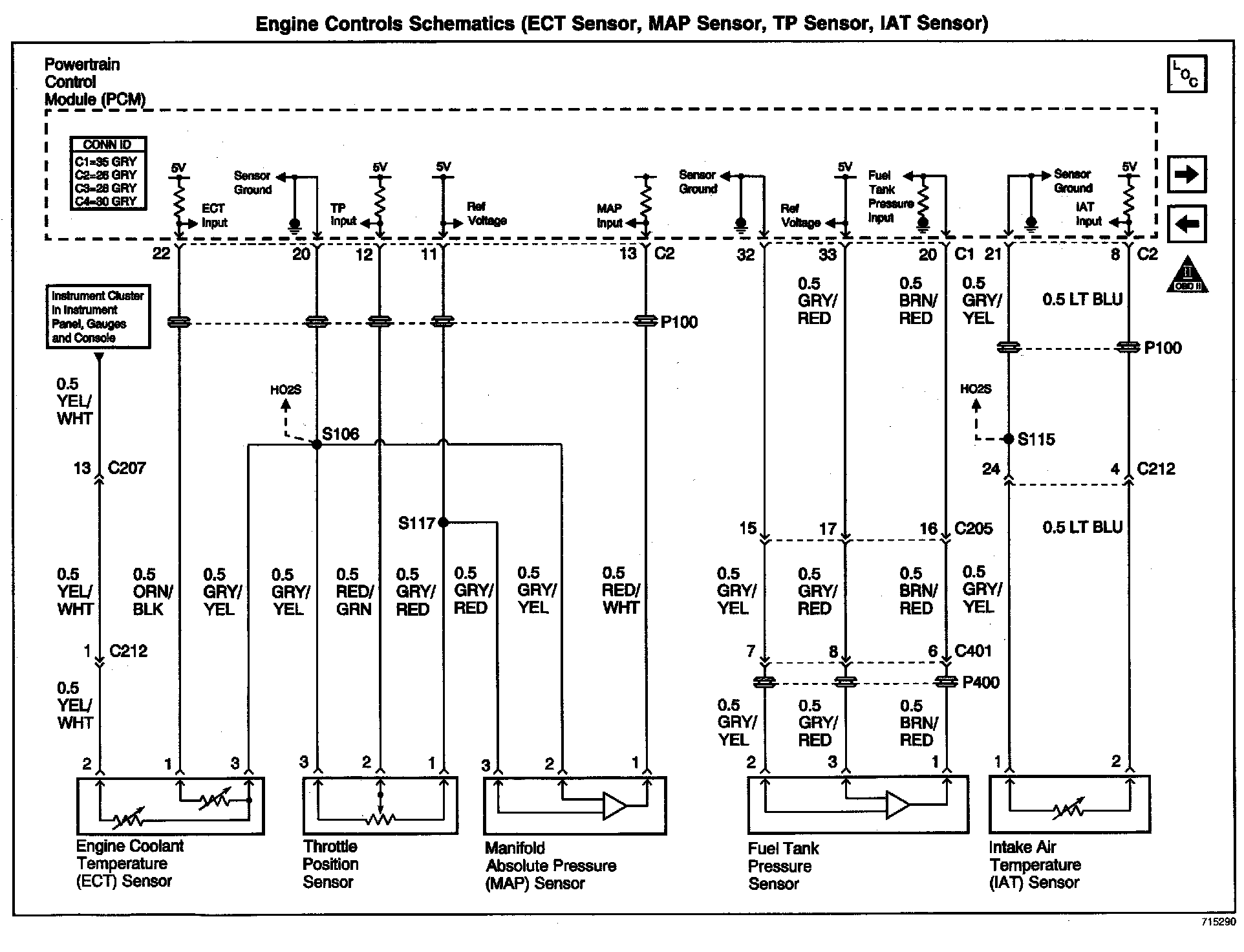Engine Controls Schematics: ECT Sensor, MAP Sensor, TP Sensor, IAT Sensor: