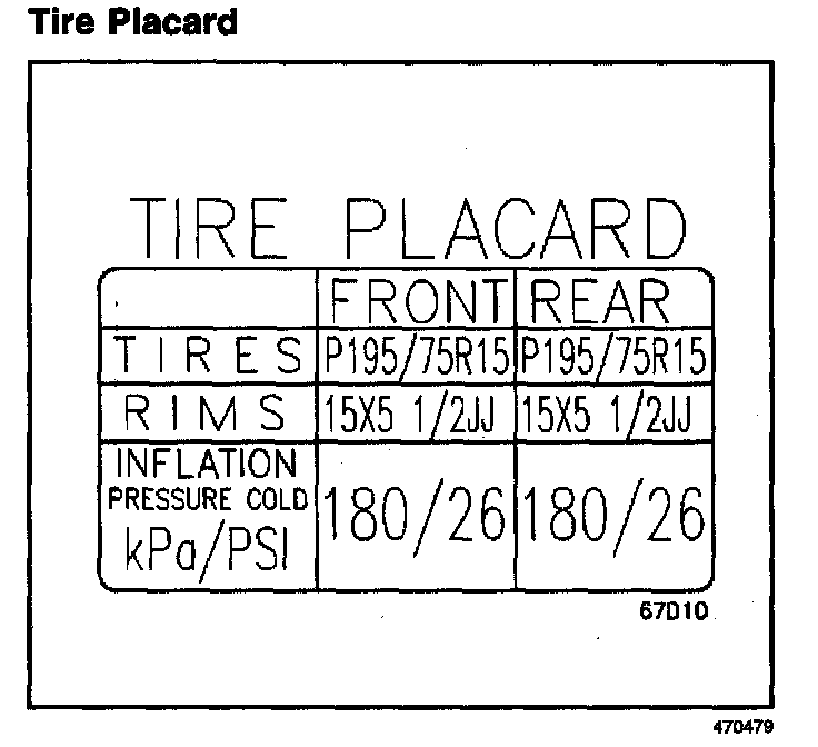 The tire placard is located on the left door lock pillar. Refer to the placard to obtain: