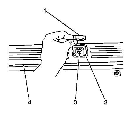 2. Remove the rear floor rear trim plate (4) from the vehicle by gently disengaging the plastic retainers.