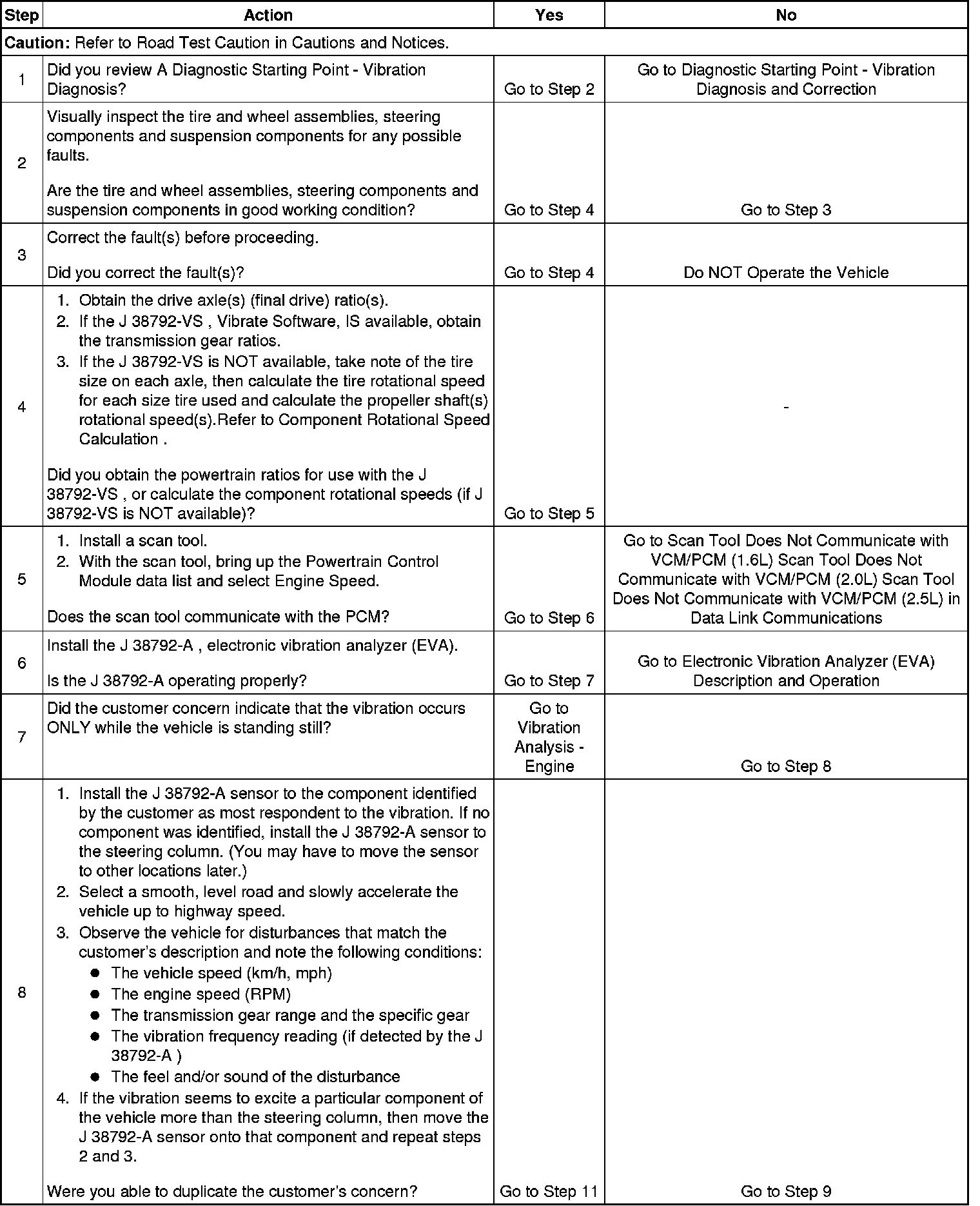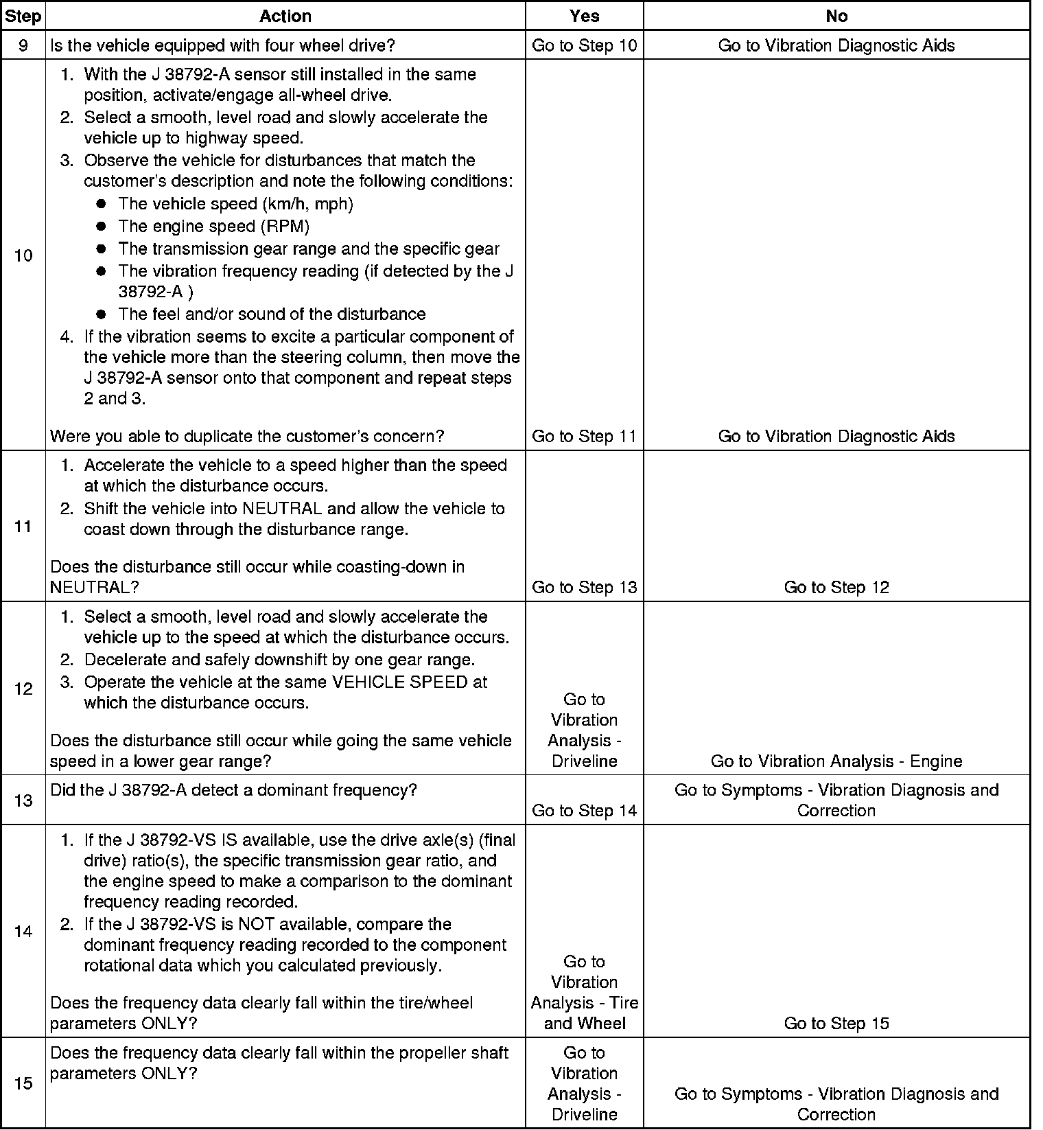 4. Obtaining rotational speed for the components rotating at both tire/wheel speed and propeller shaft speed is critical to systematically eliminating specific vehicle component groups. (These component rotational speeds can be generated by using the J 38792-VS , Vibrate Software, or through calculating them manually.)
