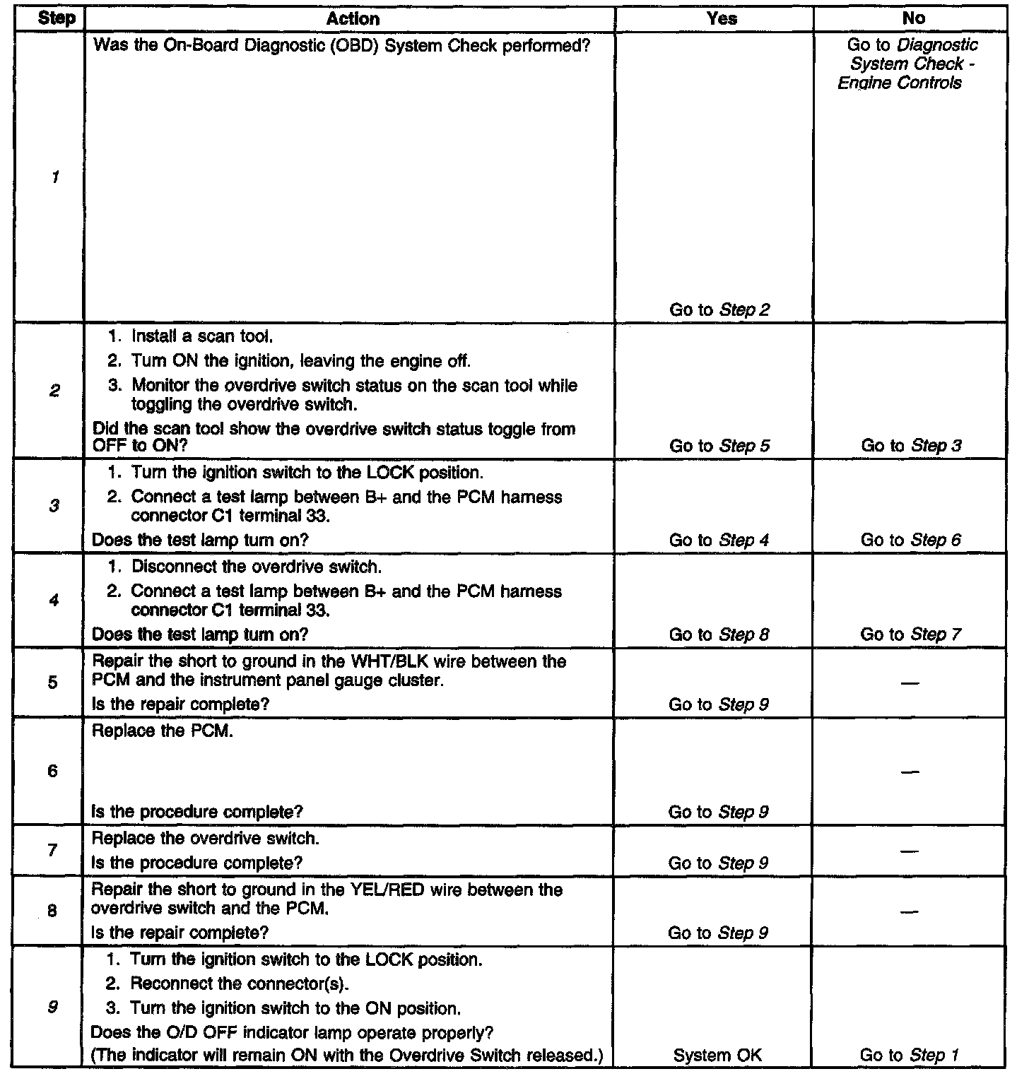9. This step tests for proper operation of the OD/OFF indicator.