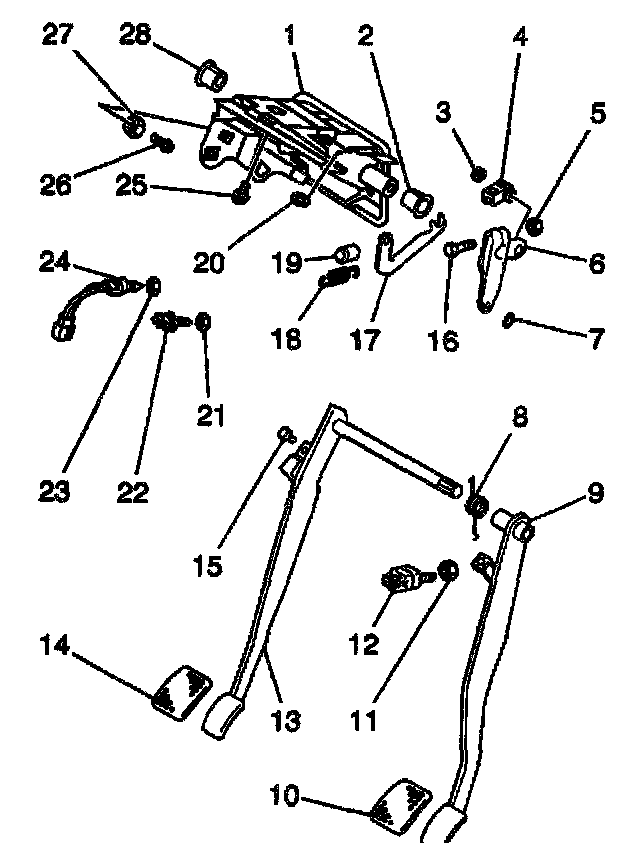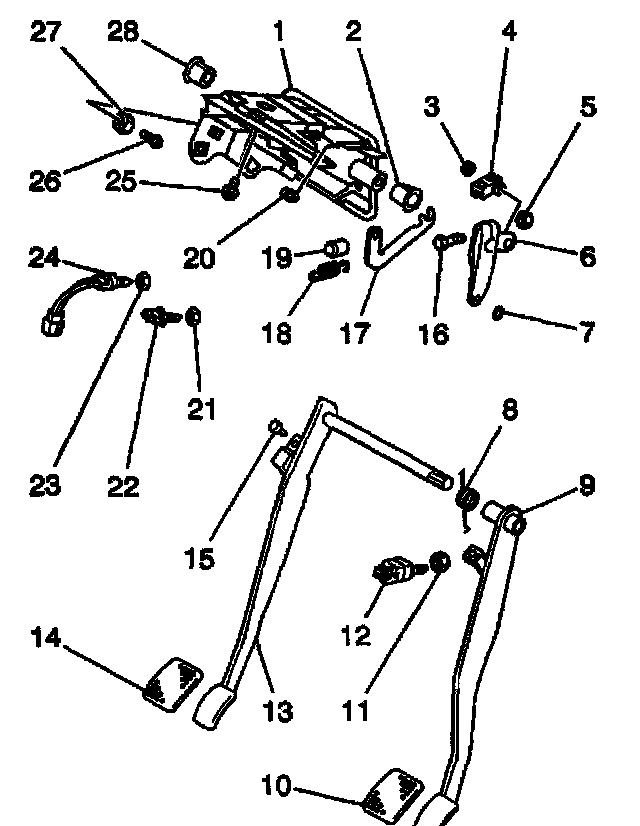 8. Remove the 3 bolts (25) at the top of the clutch pedal bracket.